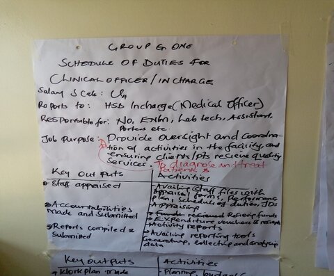 “Number one was to come up with a supervision plan. Number two was to come up with teams – the teams that would help us, that we have to conduct the supervisions... The third was to facilitate health centre interface meetings... Number four, was to develop and submit weekly plans – that is individual plans… Then to train supervisors in effective support supervision. The other one was to orientate the staff on their roles and responsibilities – that’s assigning each a job description that we were also missing in the HR personal files. And the last one was to come up with a specific transport system that was also lacking and also contributing to our poor performance in supportive supervisions.”